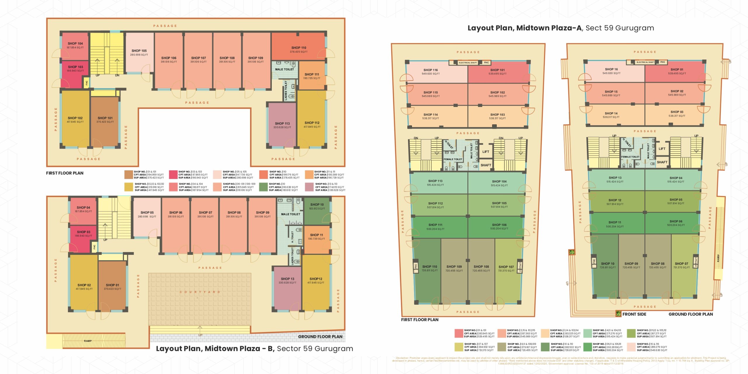 | Shop Size (Sq. Ft.) | Floor | Price Per Sq. Ft. (₹) | Registration Amount (₹) | 30% On Allotment (₹) | 70% On Offer of Possession (₹) | Total Amount (₹) |